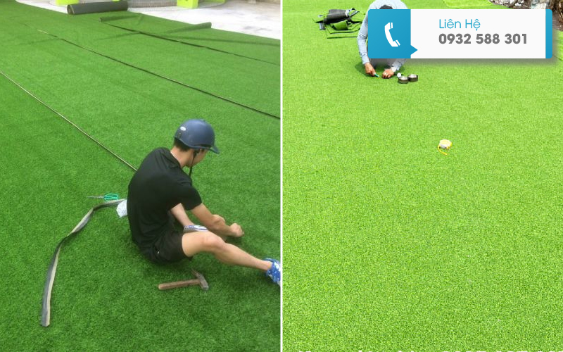 Cắt và trải thảm cỏ nhân tạo.